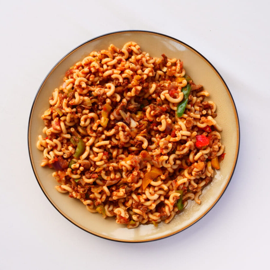 Durum tarwe griesmeel, water, prei, ui, paprika, rode ui, champignons, palmolie, water, knoflook, suiker, sojasaus, zout, tomatenpuree, basilicum, oregano, peterselie, rode chili, natuurazijn, gemodificeerd maïszetmeel, xanthaangom, gebrande suikerstroop, vegetarisch gehakt.